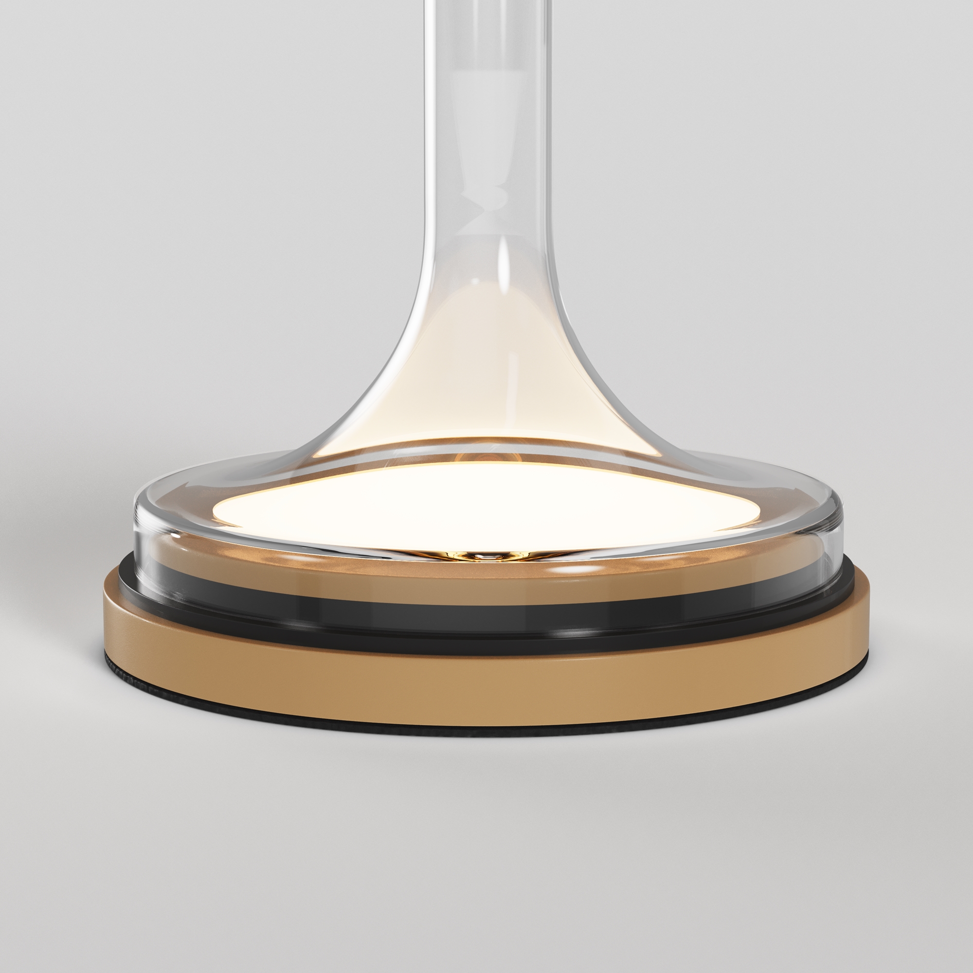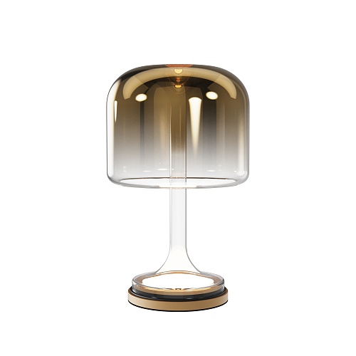 Материал арматуры и плафонов — литое стекло, цвет — градиентный черный, золотой и белый. Фактура поверхностей гладкая. Источник света: LED. Цветовая температура светильника 3000К, угол рассеивания света 120°. На проводе расположен тач-сенсор, при длительном нажатии световой поток меняет свою мощность (диммируется). Отражаясь от стекла, свет стремится вниз, создавая визуальный эффект парения плафона в воздухе.