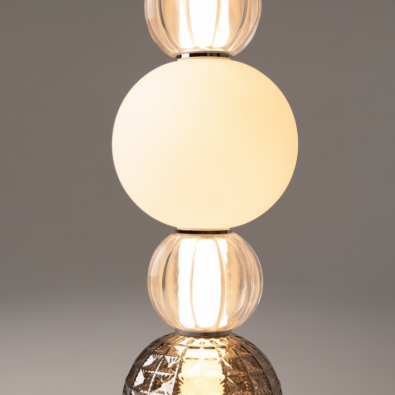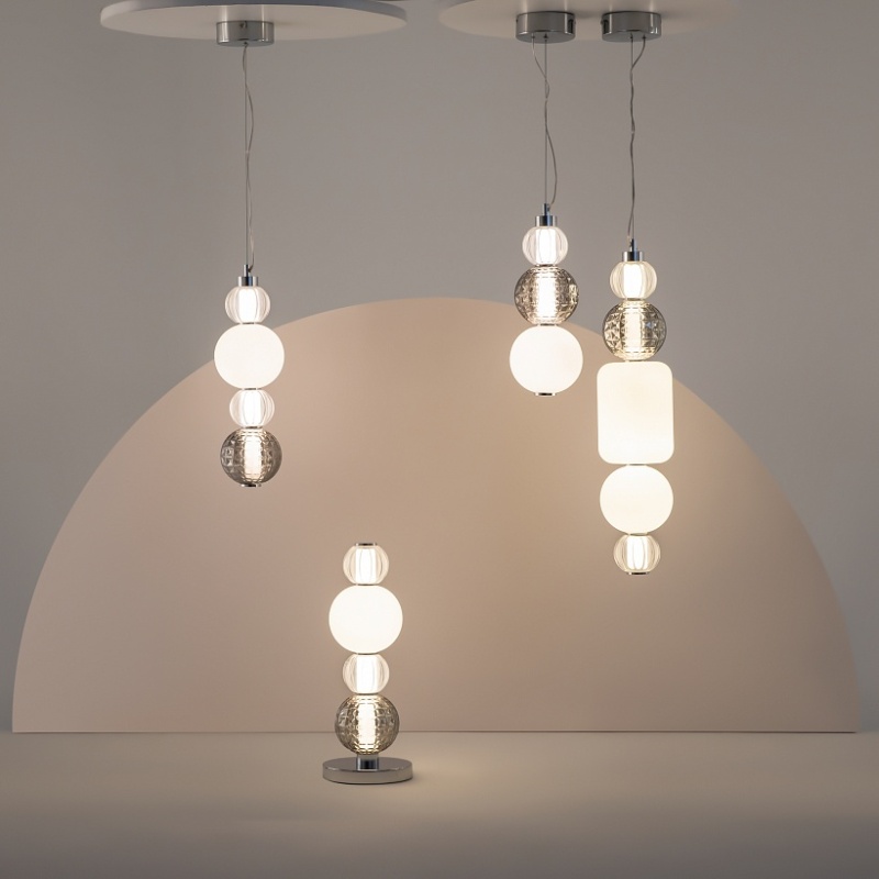 Серия Collar — выбор настоящих ценителей эксклюзивного дизайна. Светильники выполнены в виде нанизанных на трос декоративных элементов из стекла 3 видов: литого прозрачного с вертикальным рисунком, дутого матового и штампованного тонированного стекла с геометрическим рисунком. Светодиодная лента, размещенная внутри акрилового рассеивателя, обеспечивает мягкое и равномерное распределение светового потока. Серия представлена подвесами 3 размеров и настольной лампой. Высота подвесных светильников регулируется длиной троса. Сочетая в помещении несколько моделей Collar, можно создавать необычные и стильные настольно-подвесные композиции.