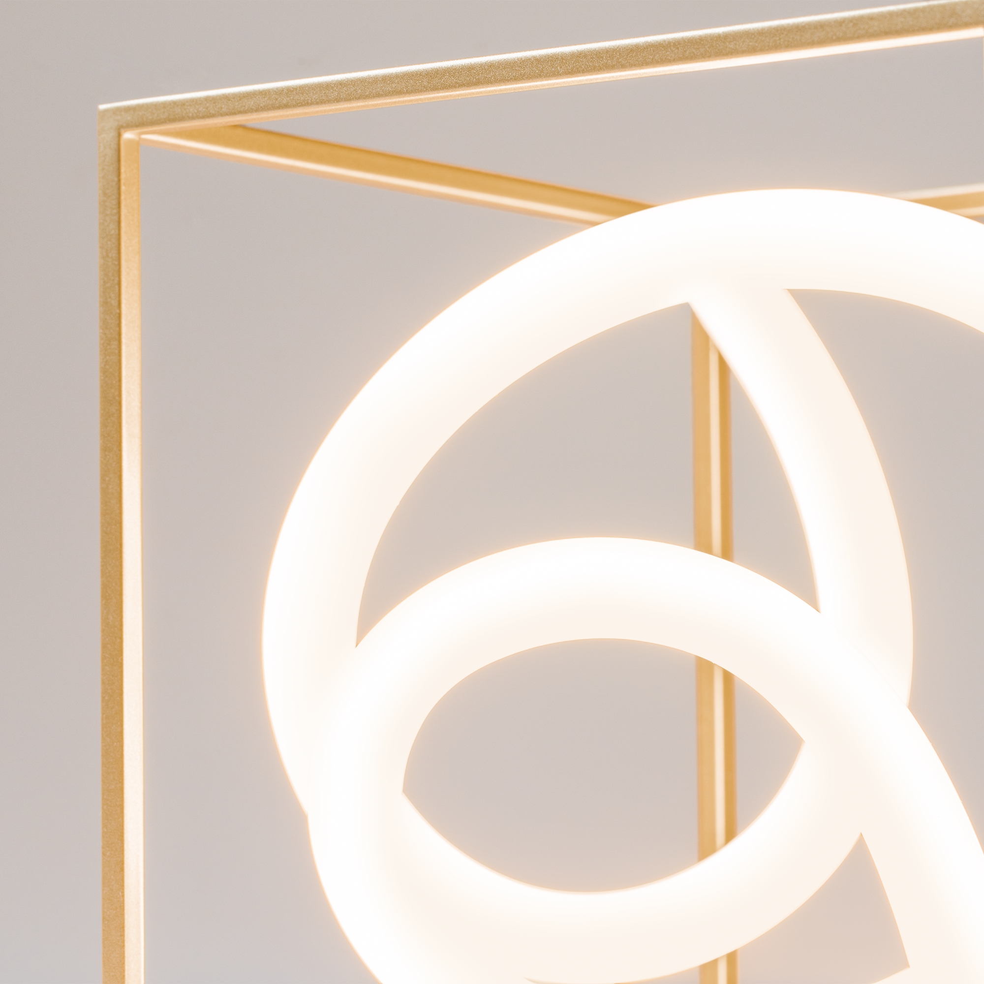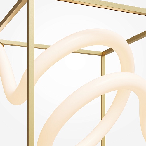 Металлическая арматура, цвет - латунь. Графичный силуэт. Источник света - гибкая неоновая трубка, расположенная внутри арматуры. Угол рассеивания — 120 градусов. Дизайн светильников подходит для интерьера в стиле лофт, а также индустриального стиля. Регулируемый провод подвесного светильника — 3 м.