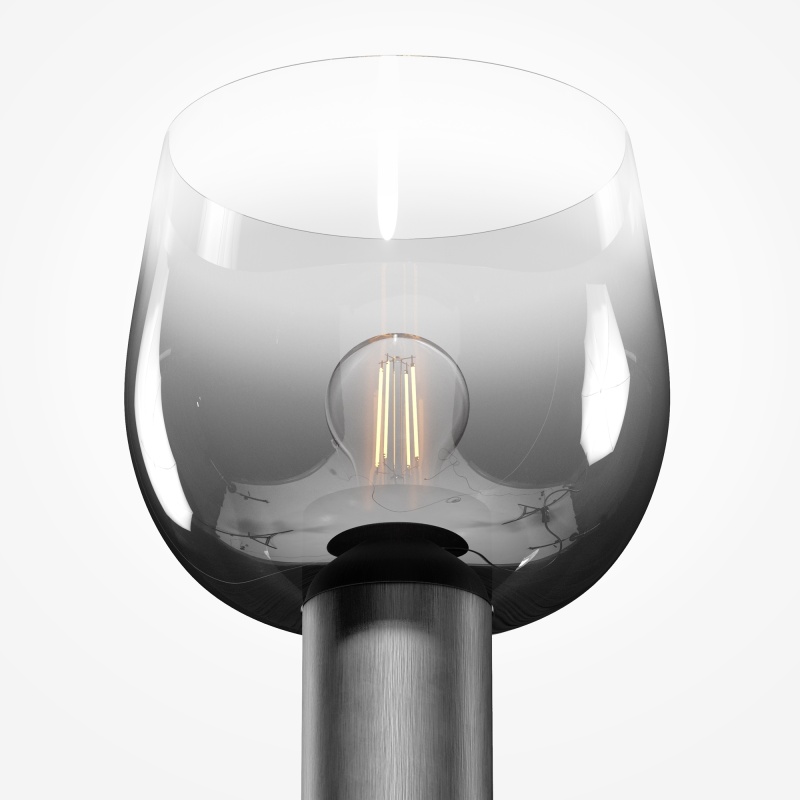 Цветовая гамма: дымчато-серый или насыщенно-янтарный цвет стекла в сочетании с черной или золотой арматурой. В серии есть модели светильников со сменным источником света с цоколем Е27 (каскадная композиция, потолочный и настольные светильники) и LED-источником (одинарные подвесные светильники). Температура свечения LED – 3000 К, угол рассеивания — 120 градусов. Плафоны каскадной композиции плафоны разных размеров и оттенков, установленные на одно основание. Оригинальный декор — актуальный вариант современной классики.