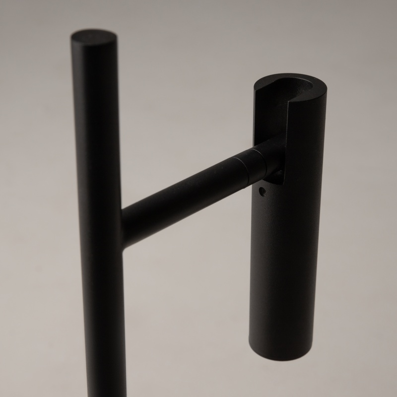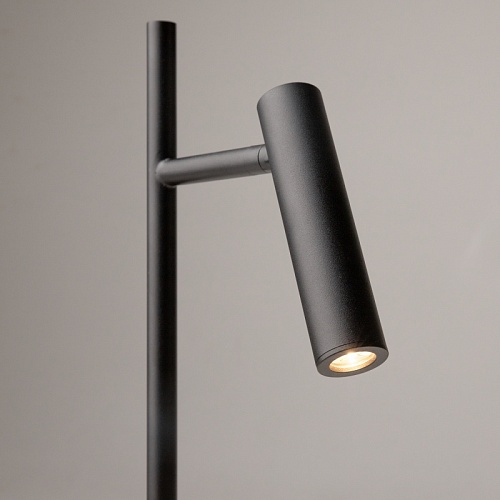 Металлический корпус в черном и белом оттенках. Вращающийся плафон-цилиндр позволяет регулировать направление светового потока. Декоративная подсветка основания. LED источник света, цветовая температура 3000К.