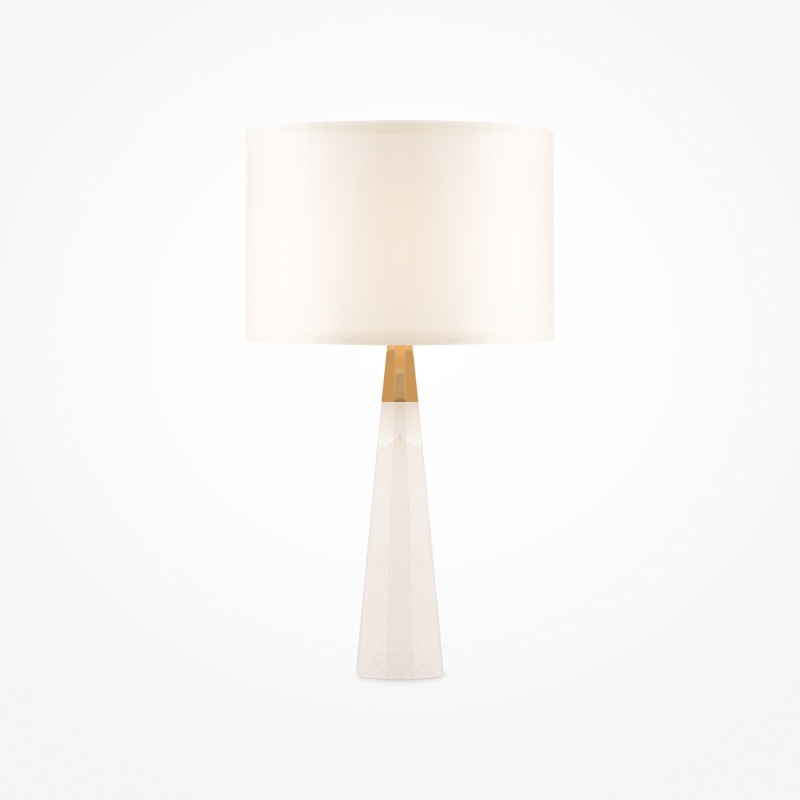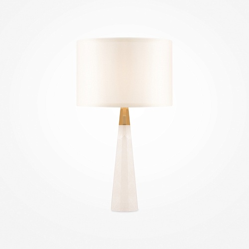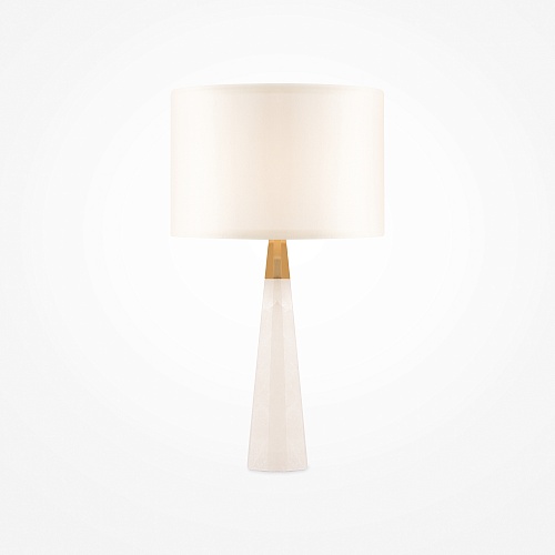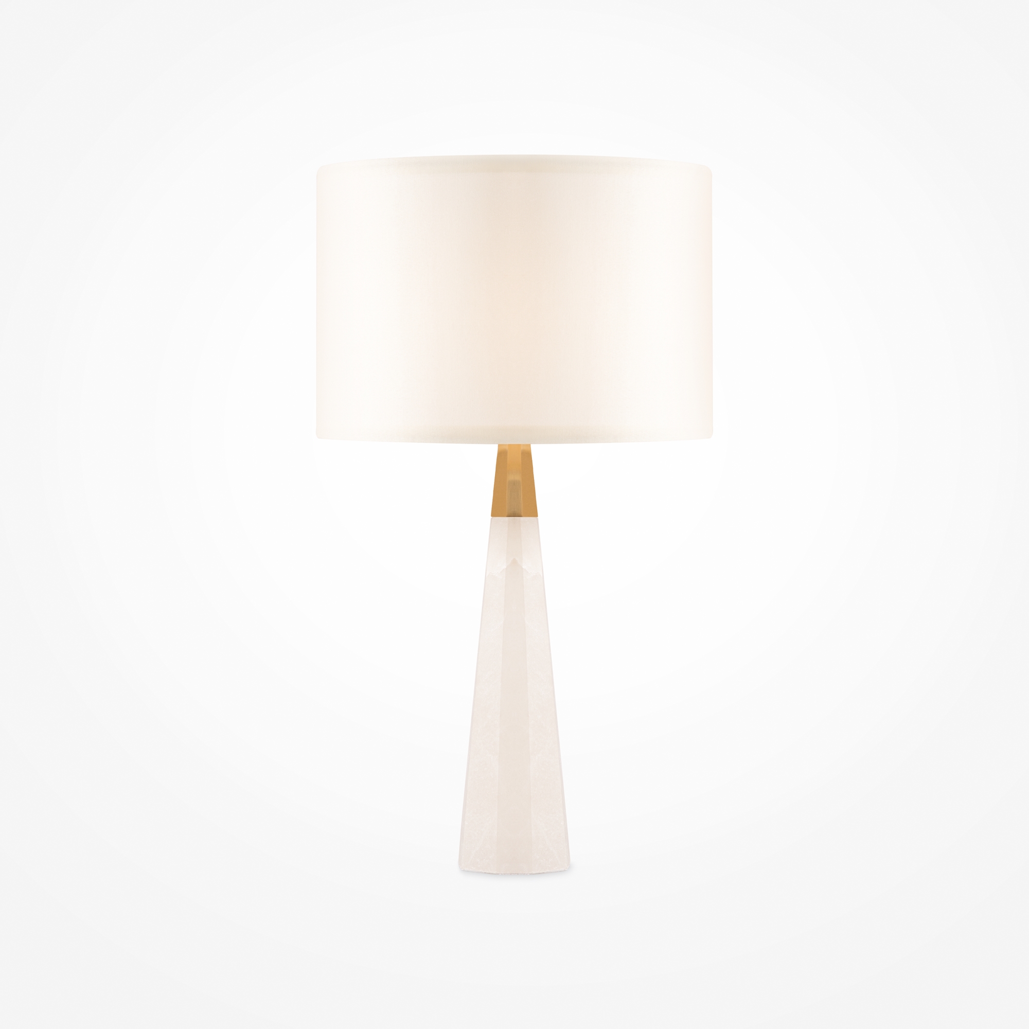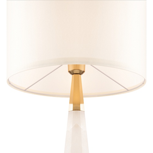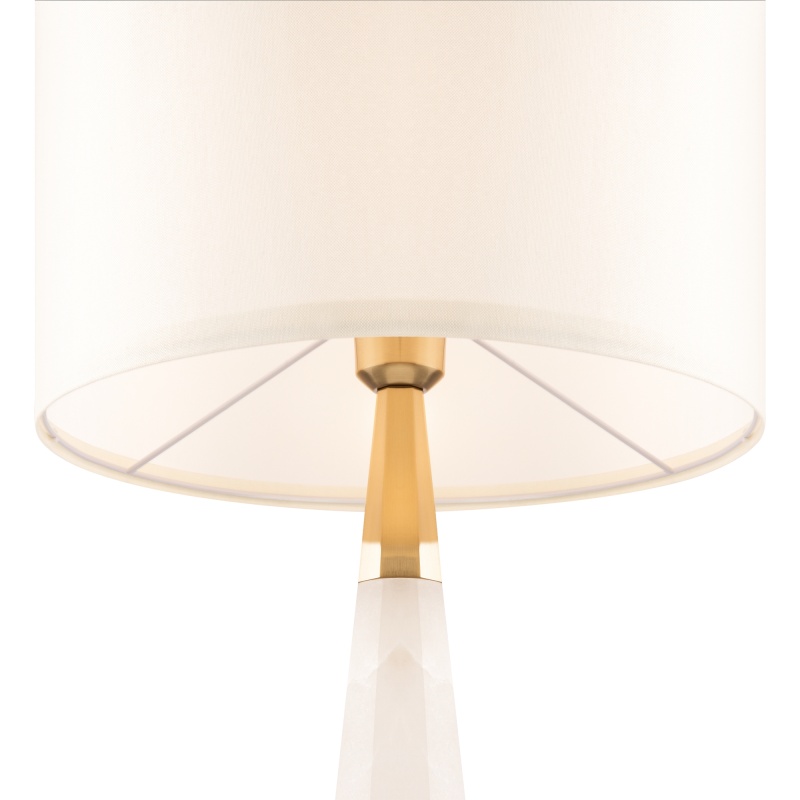 Металлическая арматура, цвет – латунь. Абажур – белый хлопок. Изюминка дизайна – элементы из натурального камня (алебастра). Трендовый микс фактур. Лаконичные формы в американском стиле. Источник света - лампа с цоколем Е14.