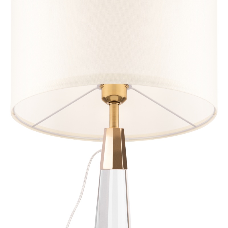 Металлическая арматура, цвет – латунь. Абажур – белый хлопок. Изюминка дизайна – элементы из натурального камня (алебастра). Трендовый микс фактур. Лаконичные формы в американском стиле. Источник света - лампа с цоколем Е14.