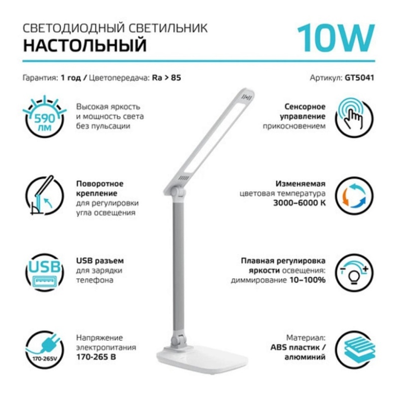 Характеристики Офисная настольная лампа GAUSS GT5041_GAUSS