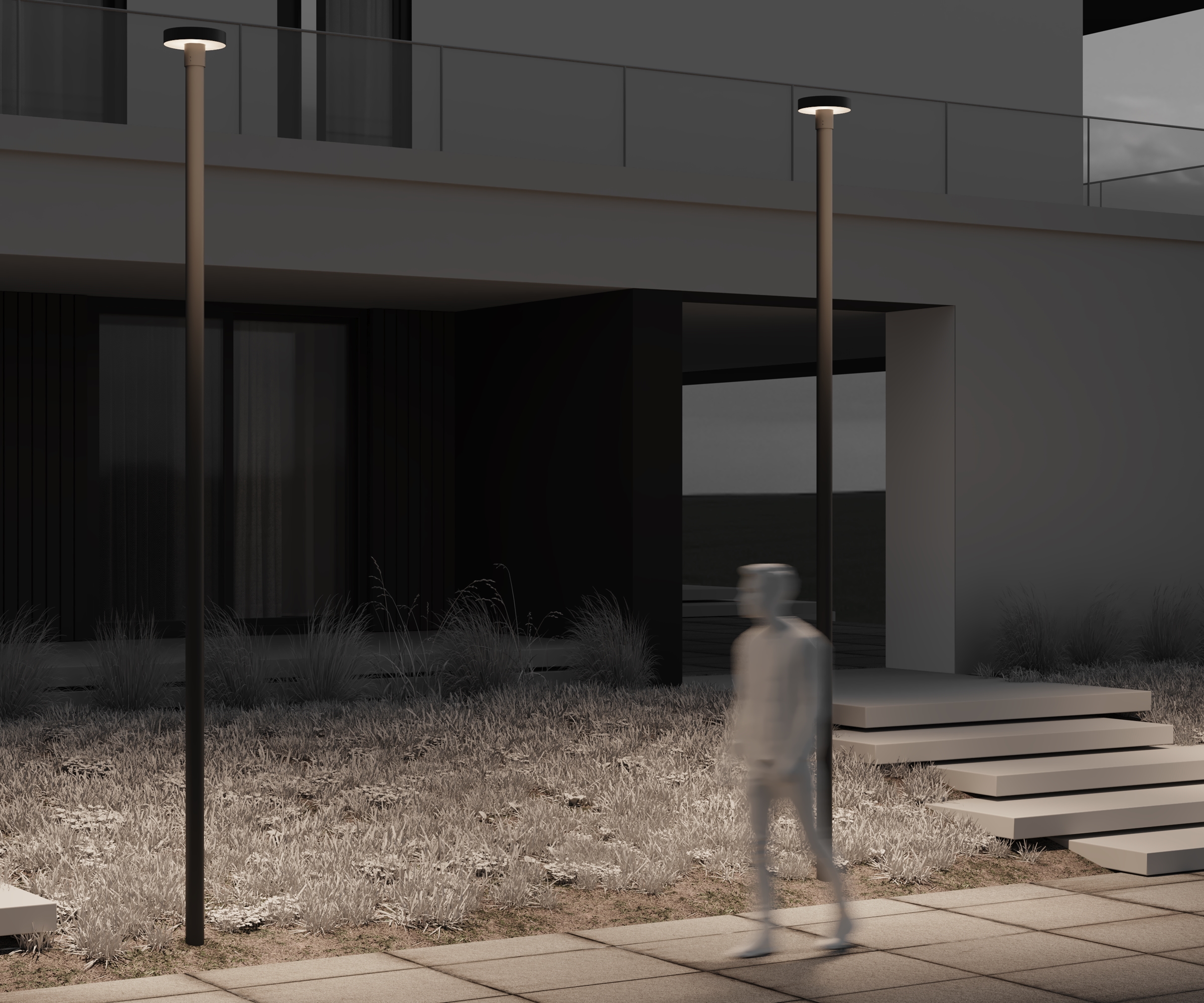 Для освещения дорожек лучше использовать низкие светодиодные столбики или встроенные светильники с направленным светом.