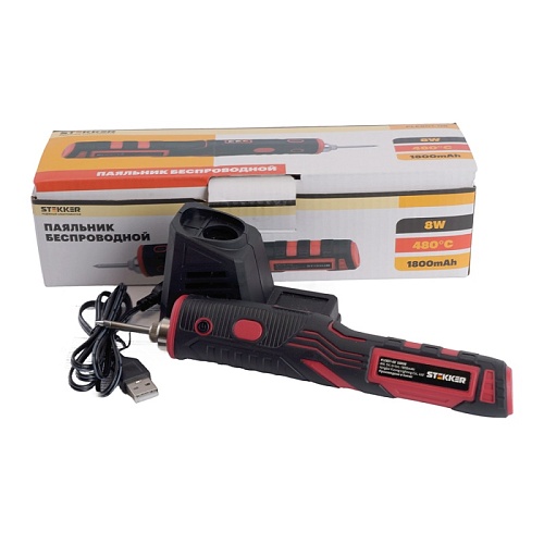 Паяльник беспроводной 8W, нихромовый нагреватель, 1800 mAh, 5В, красный/черный, PLE801-08 50098