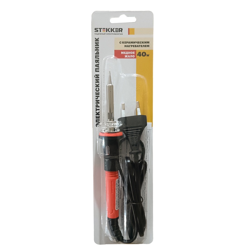 Паяльник универсальный 40W с керамич. сердечником , долговечное жало, 230В, STEKKER PLE211-40 49990