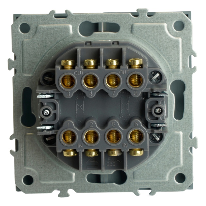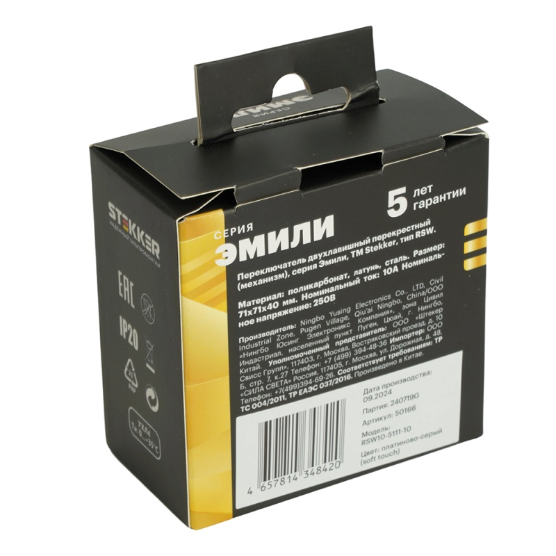 Отзывы о Переключатель перекрестный 2-клавишный (механизм), STEKKER, 250В, 10А, серия Эмили, RSW10-5111-10, платиново-серый, soft touch