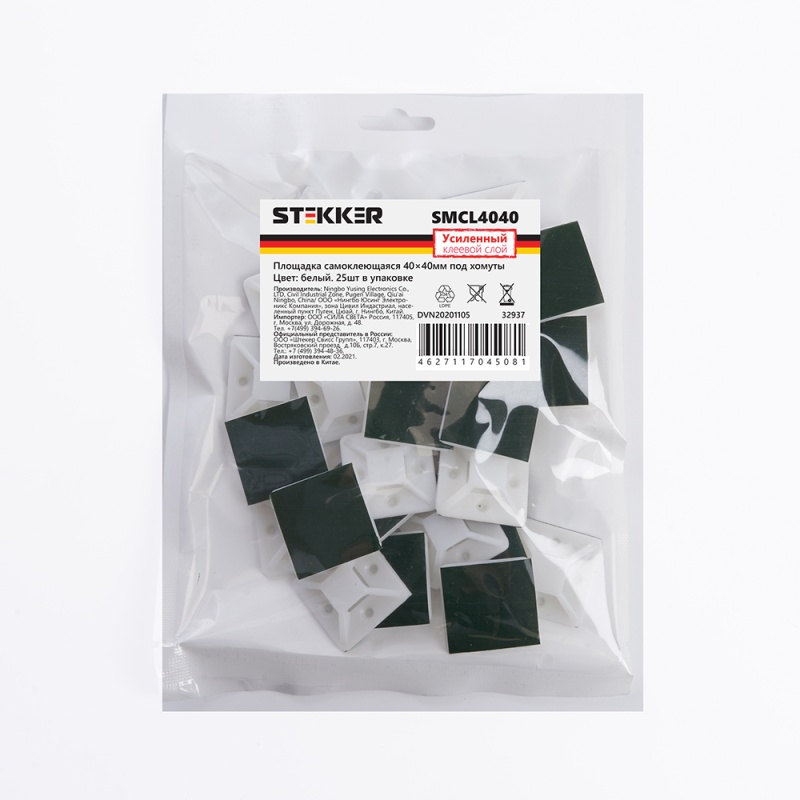Площадка самоклеющаяся STEKKER SMCL4040 40*40 мм под хомуты белый (25шт в упак)