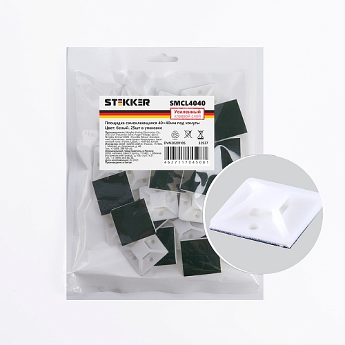 Характеристики Площадка самоклеющаяся STEKKER SMCL4040 40*40 мм под хомуты белый (25шт в упак)