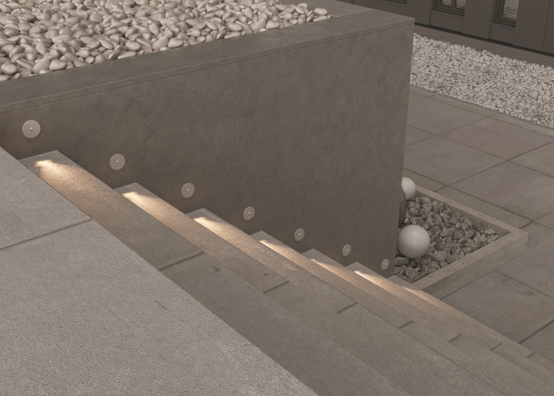 Материал корпуса — алюминий. Оттенки — черный, белый. LED-источник света, цветовая температура — 3000К. Индекс цветопередачи — 80Ra. Угол рассеивания — 30°. Высокая степень защиты —IP 54.