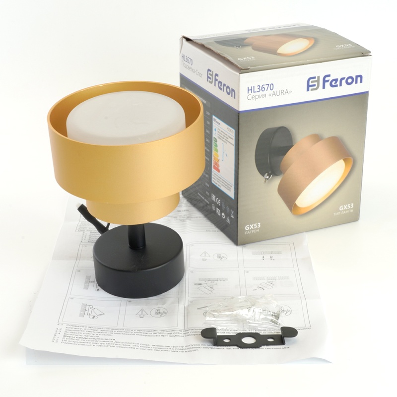 Характеристики Светильник настенный HL3670 AURA 12W, 230V, GX53, золото
