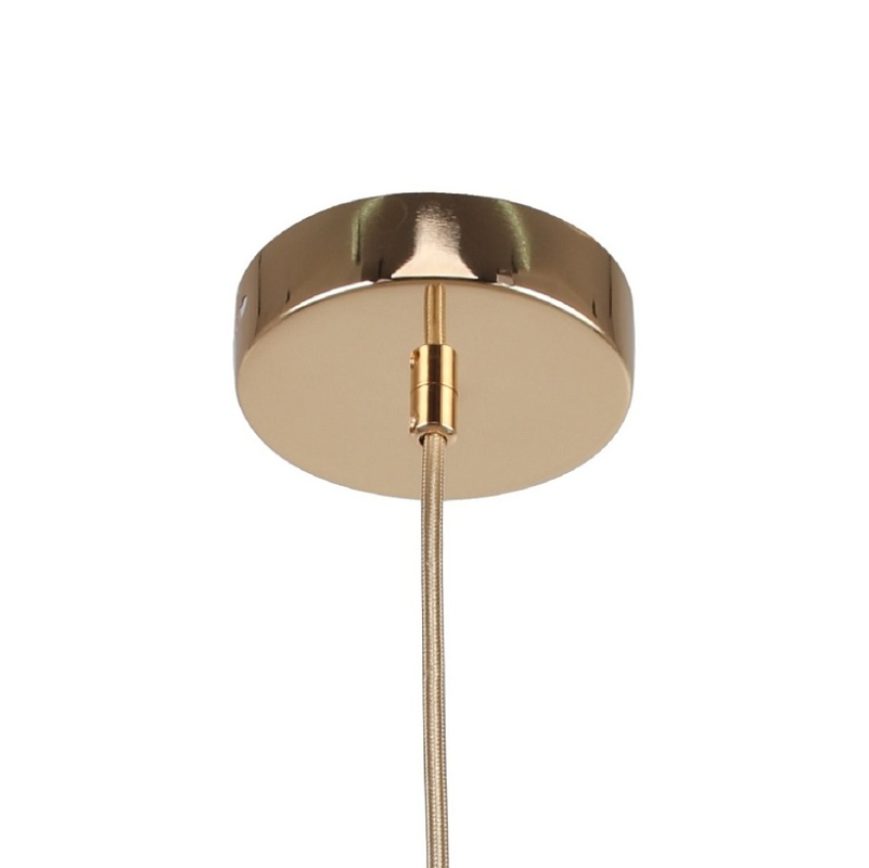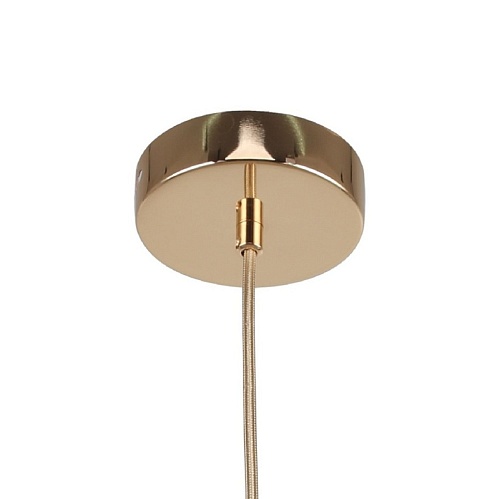 Металлический каркас золотого цвета с золотым основанием, золотой плафон, золотой декоративный элемент, регулируемая высота.