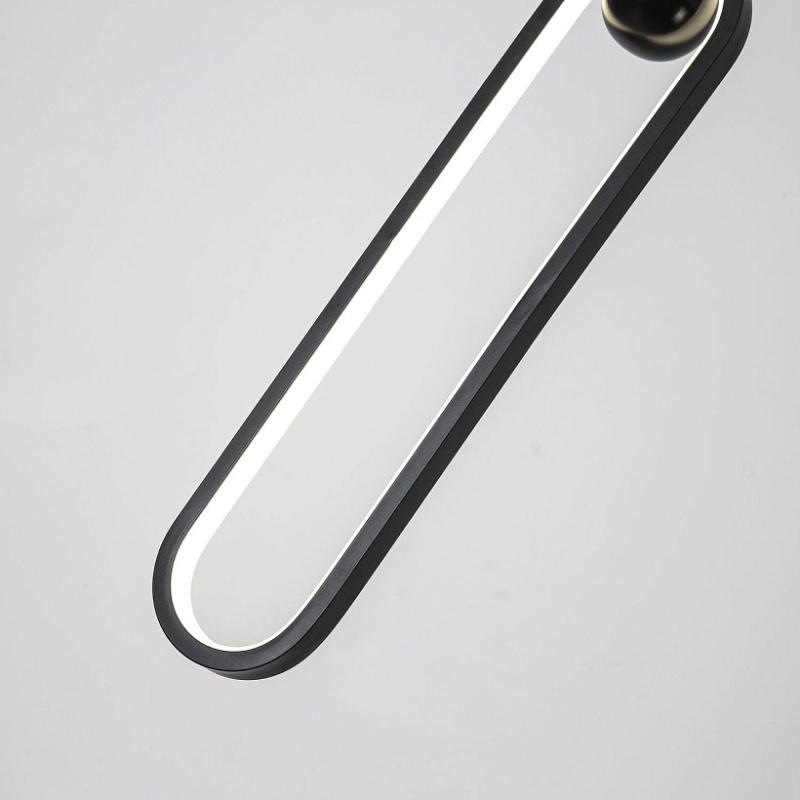 Металлический каркас матового черного цвета, глянцевое черное покрытие декоративного шара, встроенная LED лента, регулируемая высота.