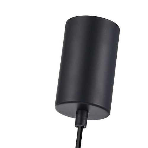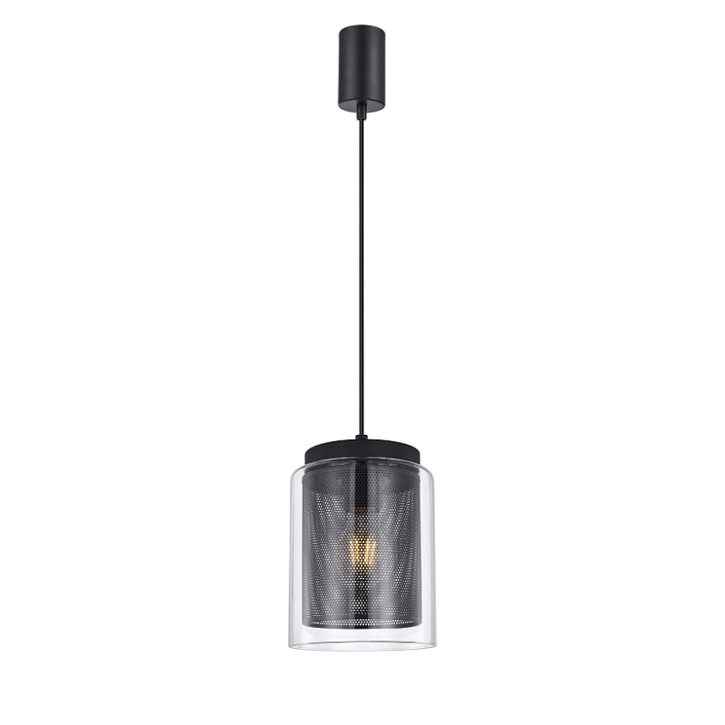 Металлически каркас черного цвета, черная сетка внутри стеклянного прозрачного плафона, цоколь E27, регулируемая высота.