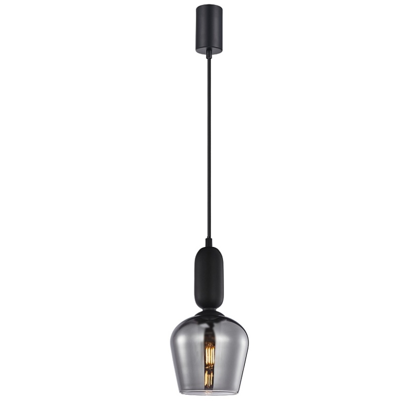 Металлический каркас черного цвета, выдувной плафон янтарного цвета, цоколь Е27,сменная лампа, регулируемая высота.