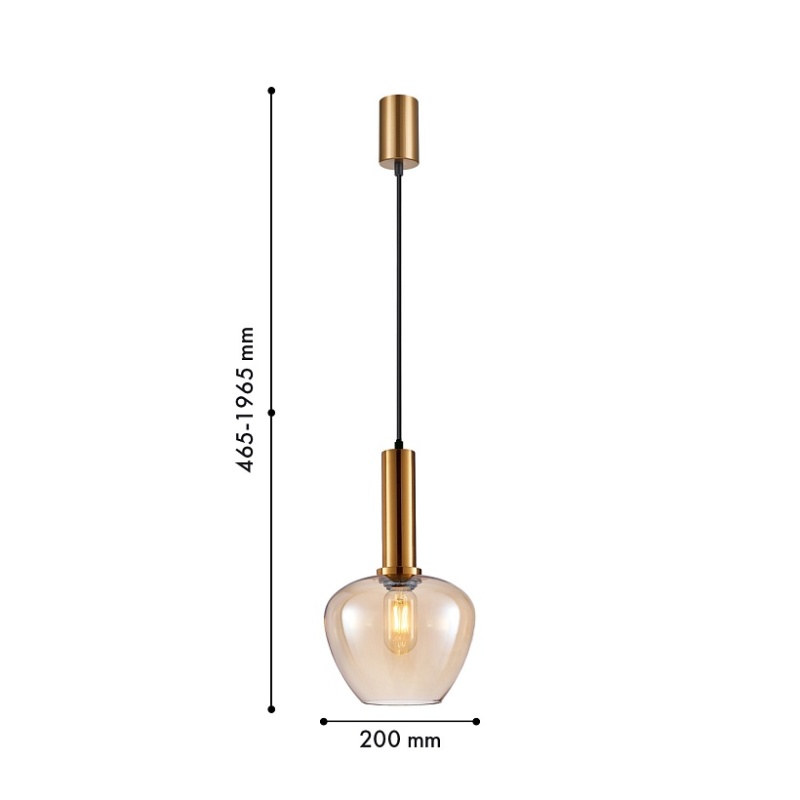 Металлический каркас в цвете латунь, выдувной плафон янтарного цвета, цоколь Е27,сменная лампа, регулируемая высота.