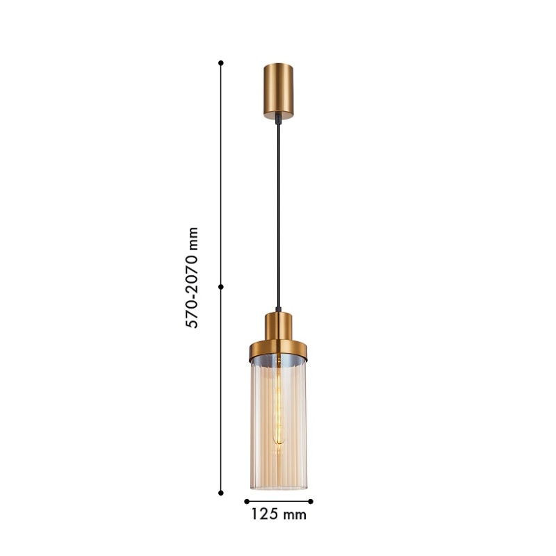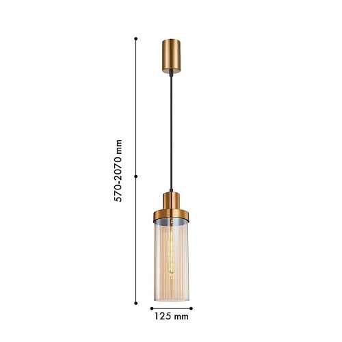 Металлический каркас в цвете латунь, с плафоном из ребристого стекла янтарного цвета, цоколь Е27, регулируемая высота.