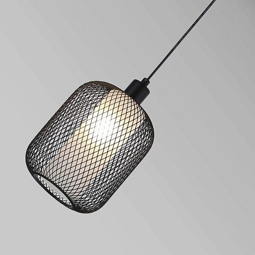 Каркас из металла черного матового цвета, двойной абажур из металлической сетки и стекла, цоколь E14.