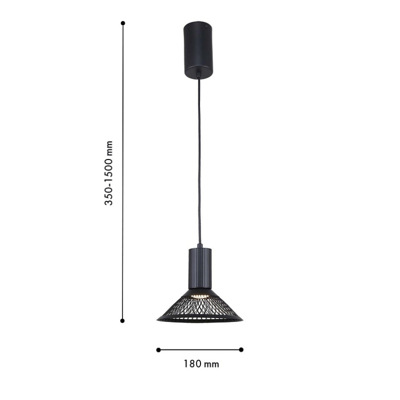 Каркас из металла черного матового цвета, плафон из металлической сетки, регулируемая высота, LED-модуль.