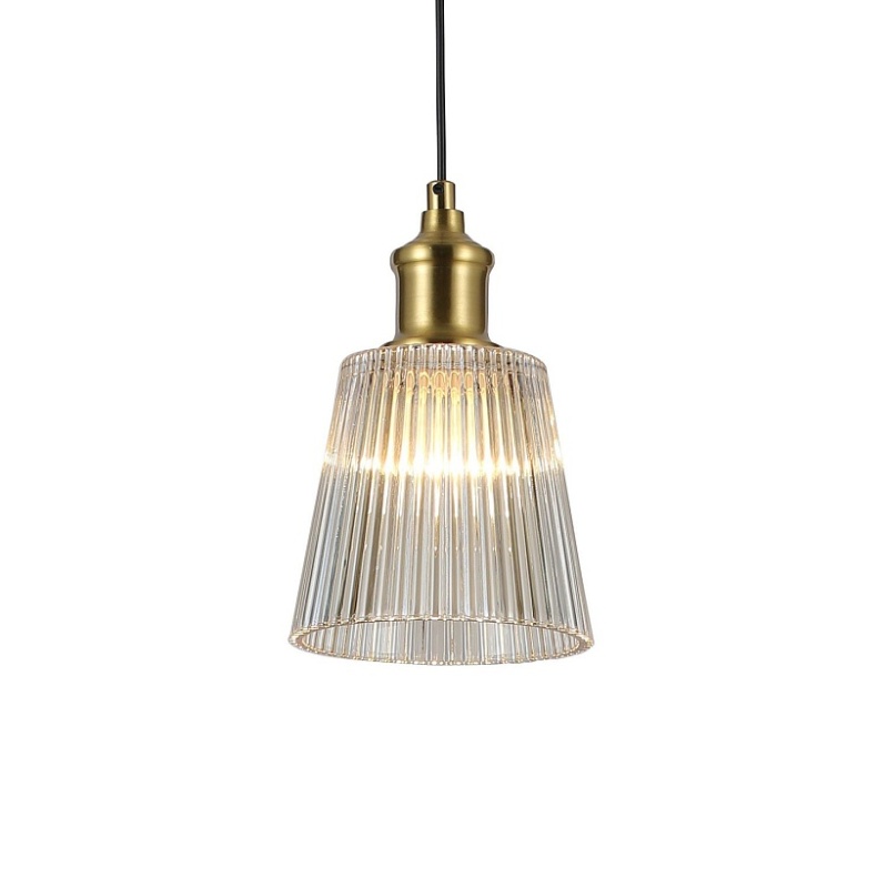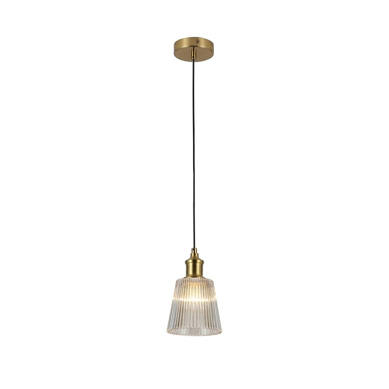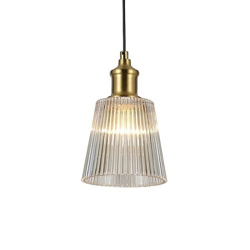 Металлический каркас медного цвета, плафон из прозрачного рифленого стекла.