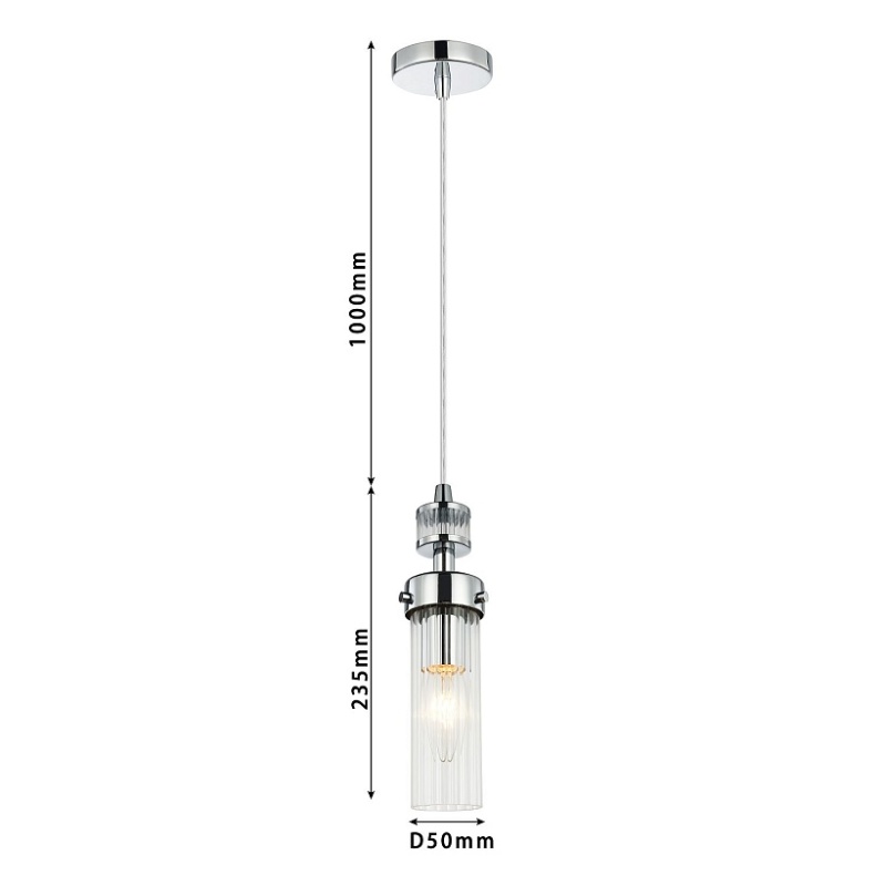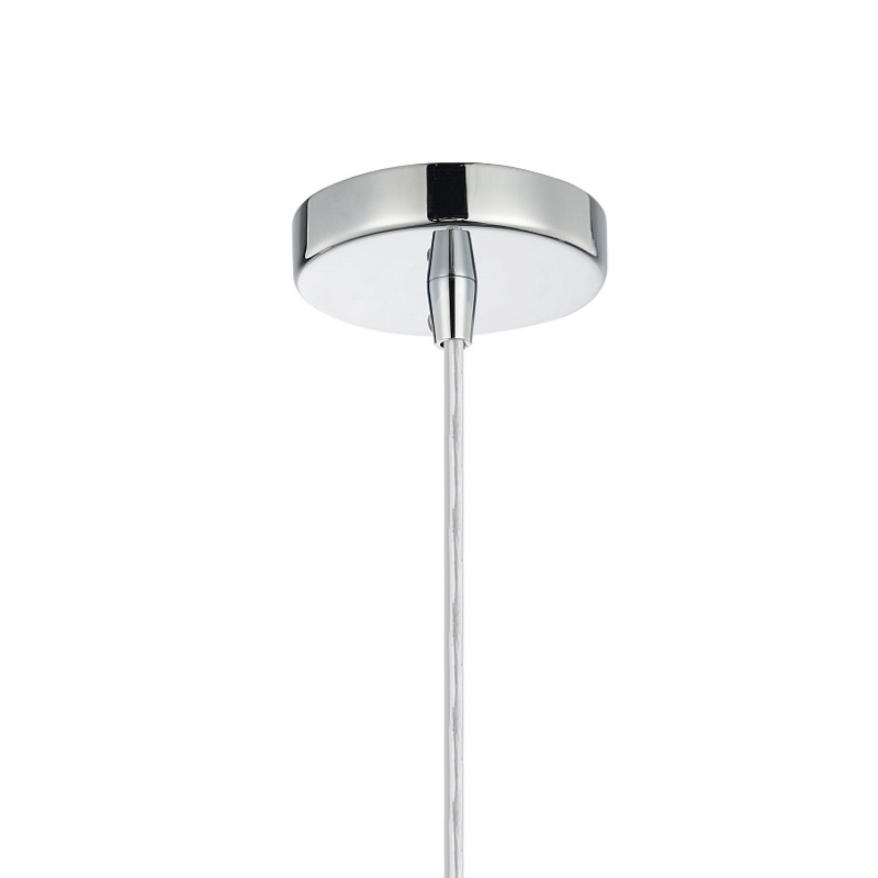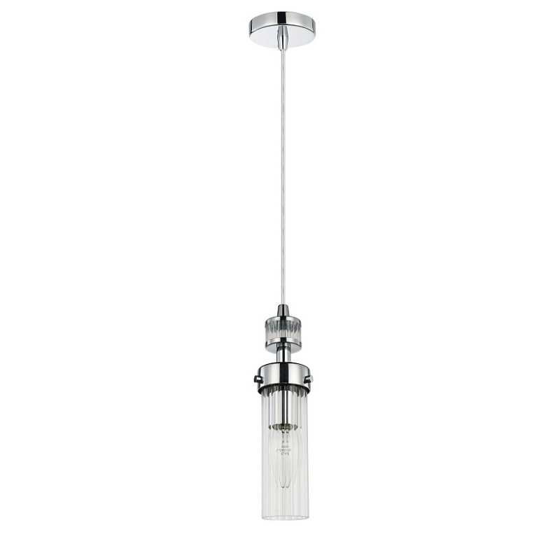 Хромированный металлический каркас, плафон из прозрачного рифленого стекла, регулируемая высота.