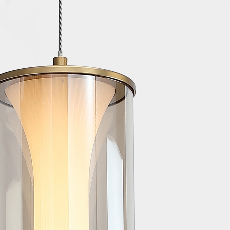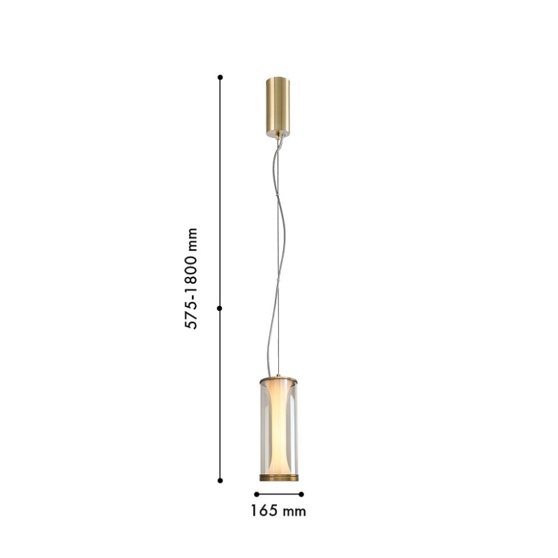 Подвес с каркасом в янтарном цвете, стеклянный плафон в белом цвете, LED-лента, регулируемая высота.