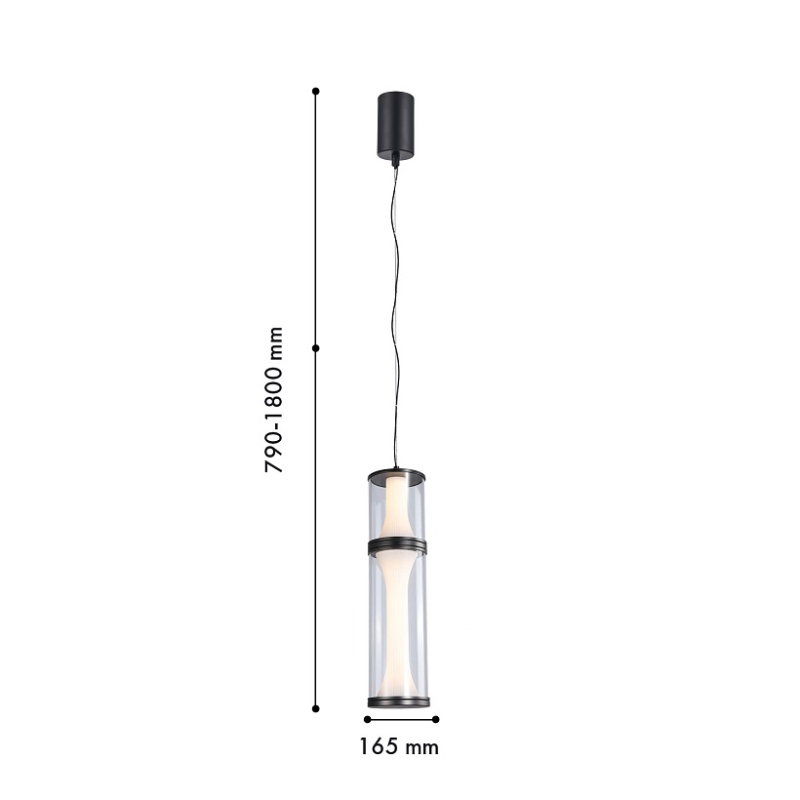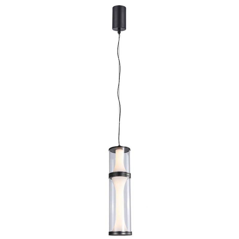 Подвес с каркасом в черном цвете, плафон из двух стеклянных сегментов в белом цвете, LED-лента, регулируемая высота.