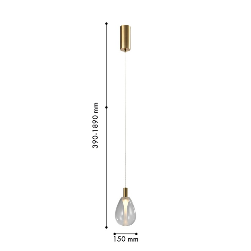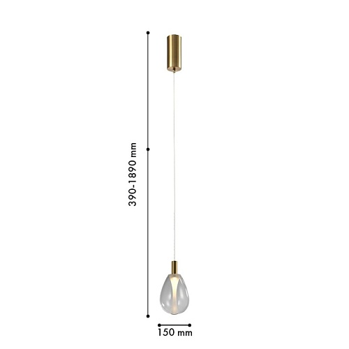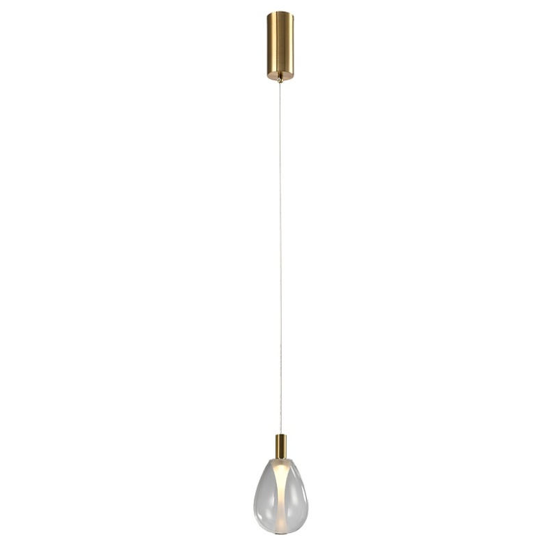 Подвес с каркасом в цвете латунь, с плафоном в прозрачном цвете, регулируемая высота, COB.