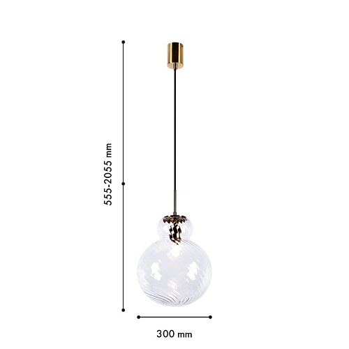 Подвес с плафоном из выдувного прозрачного фактурного стекла, каркас в цвете латунь, цоколь Е14, регулируемая высота.