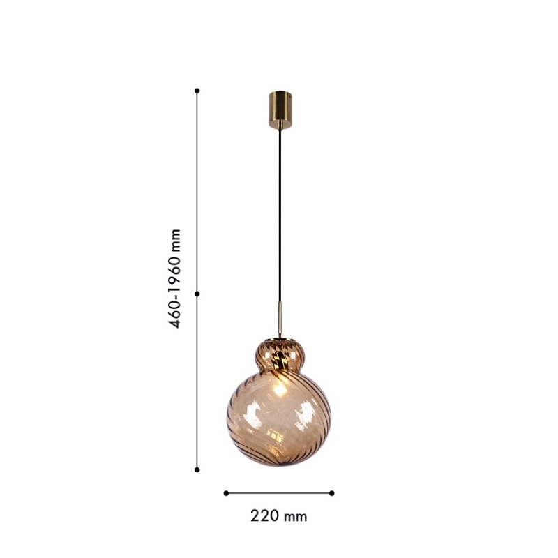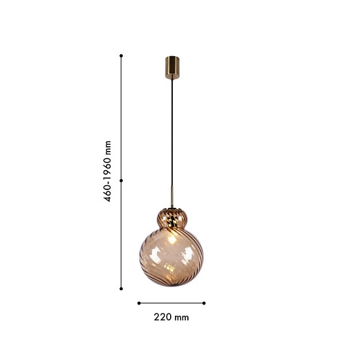 Подвес с плафоном из выдувного коричневого фактурного стекла, цоколь Е14, каркас цвета латунь, регулируемая высота.