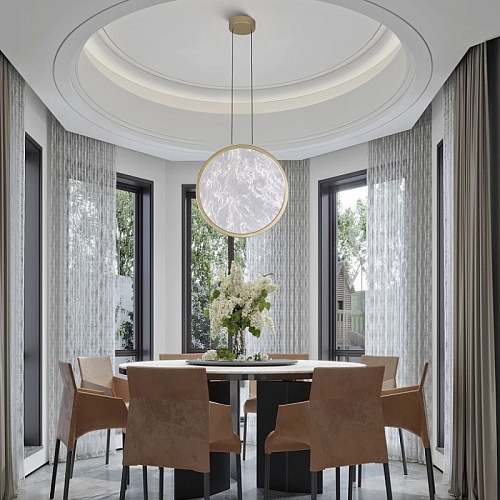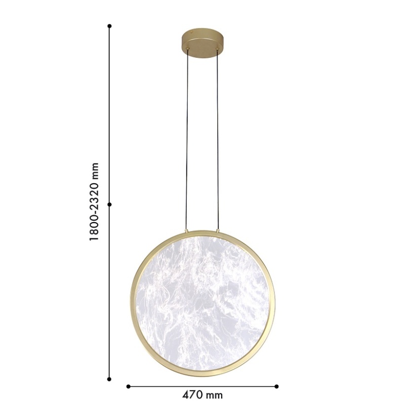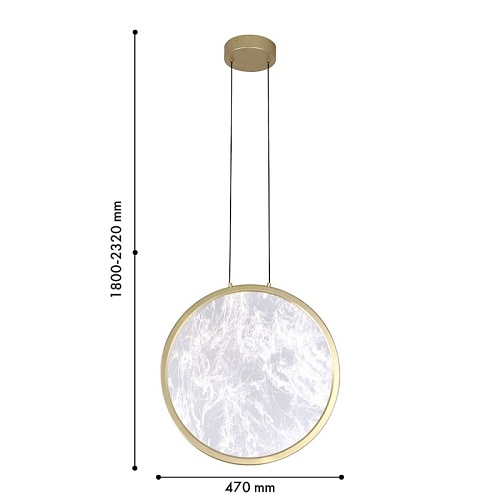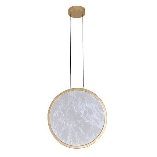 Металлический каркас в цвете матовое золото, плафон из акрила с эффектом дыма, лента LED расположена по внутреннему периметру плафона, регулируемая высота.