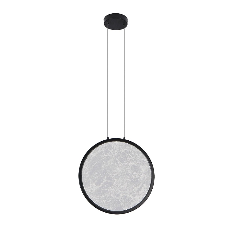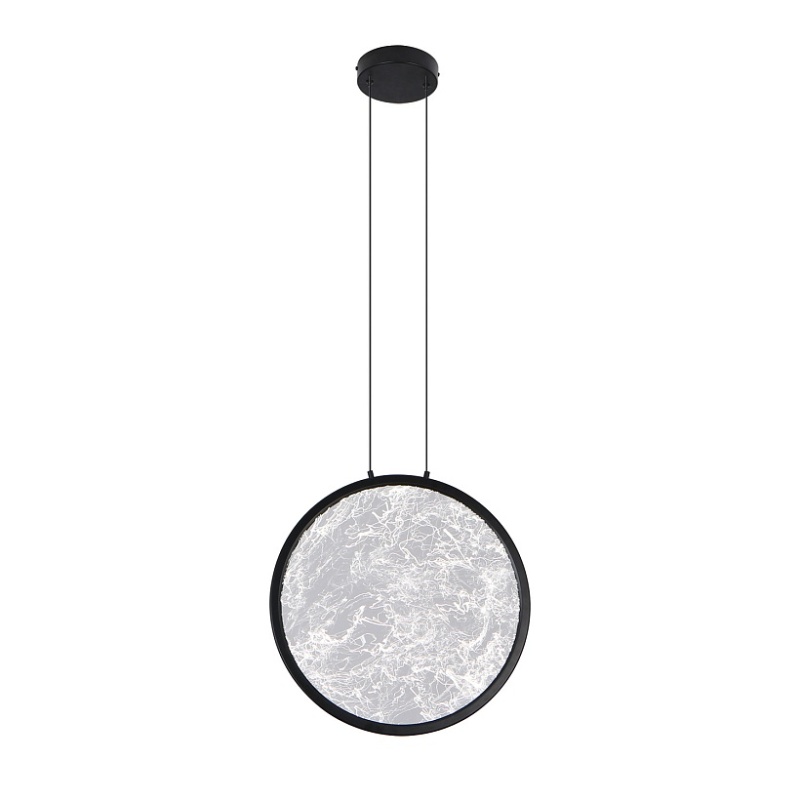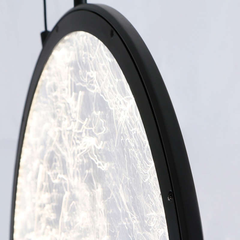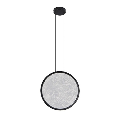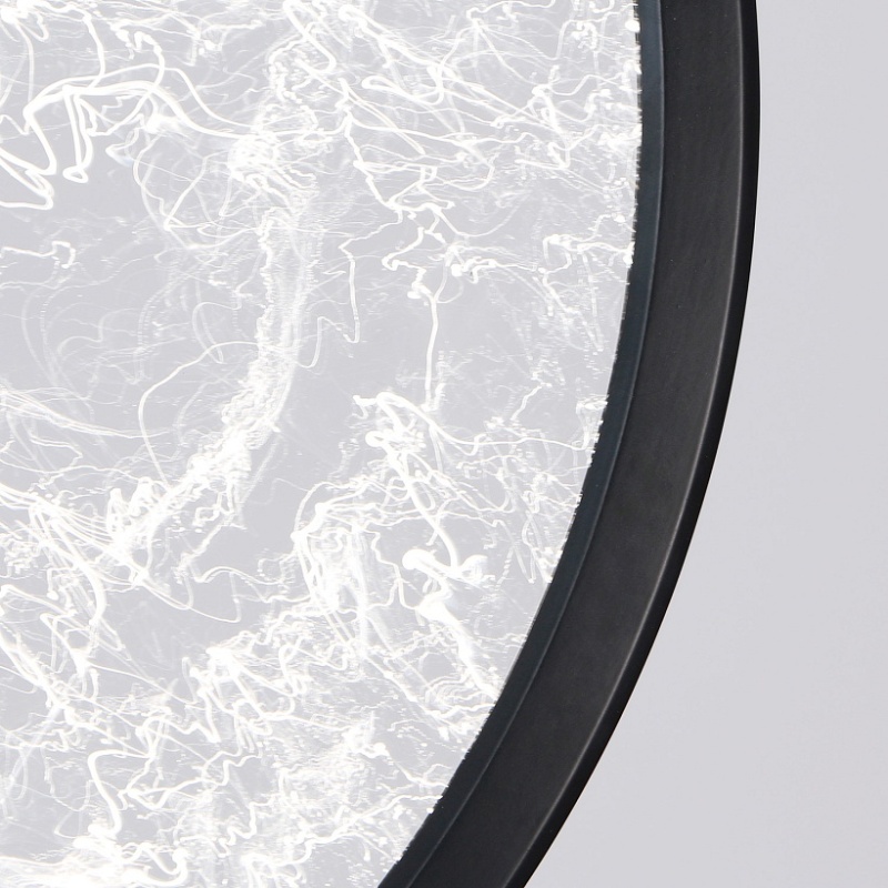 Металлический каркас в цвете матовый черный, плафон из акрила с эффектом дыма, лента LED расположена по внутреннему периметру плафона, регулируемая высота.