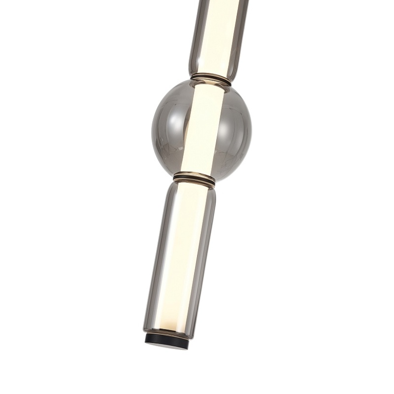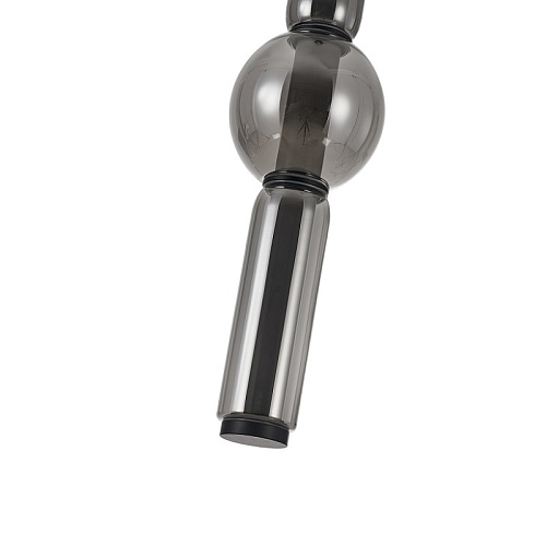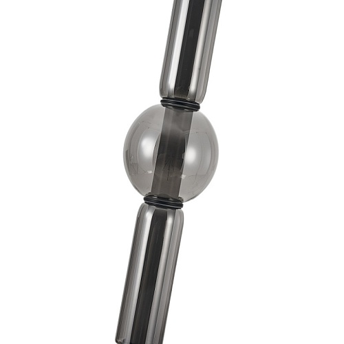 Металлический каркас черного цвета, со светлым дымчато-серым плафоном, изготовлен из выдувного стекла по муранской технологии, встроенная акриловая трубка с LED-лентой, регулируемая высота.