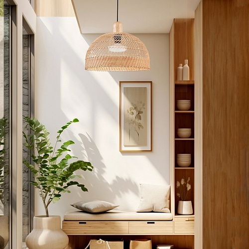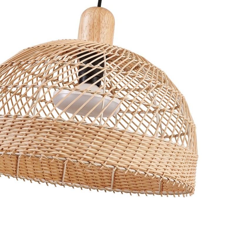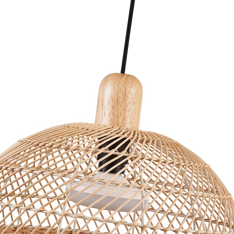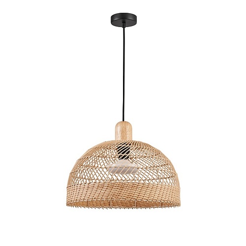 Металлический каркас черного цвета, плетеный абажур из ротанга, диаметр 40 см, выполнен в натуральном бежевом цвете, цоколь Е27.