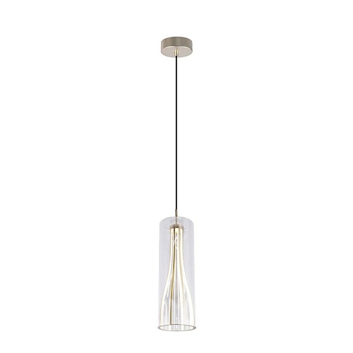 Каркас из металла цвета матовое золото, двойной плафон из стекла с обрамлением внутренней части ультратонким металлическим профилем, регулируемая высота, LED-модуль.