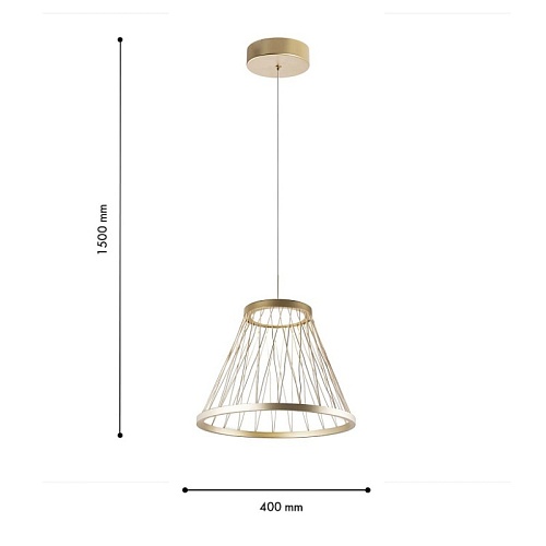 Каркас из металла цвета матовое золото, абажур из сплетённых нитей, плоский рассеиватель из акрила, регулируемая высота, LED-модуль.
