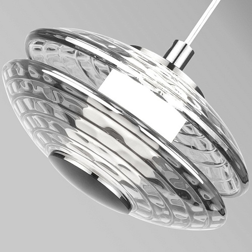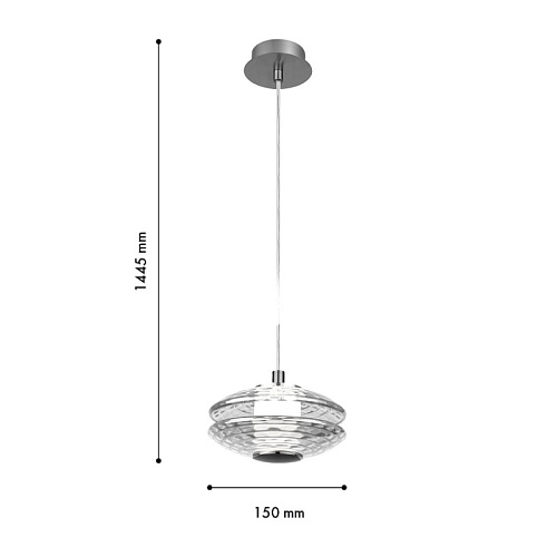Металлический каркас цвета матовый никель, закругленный фактурный плафон из прозрачного стекла, регулируемая высота, LED-модуль.