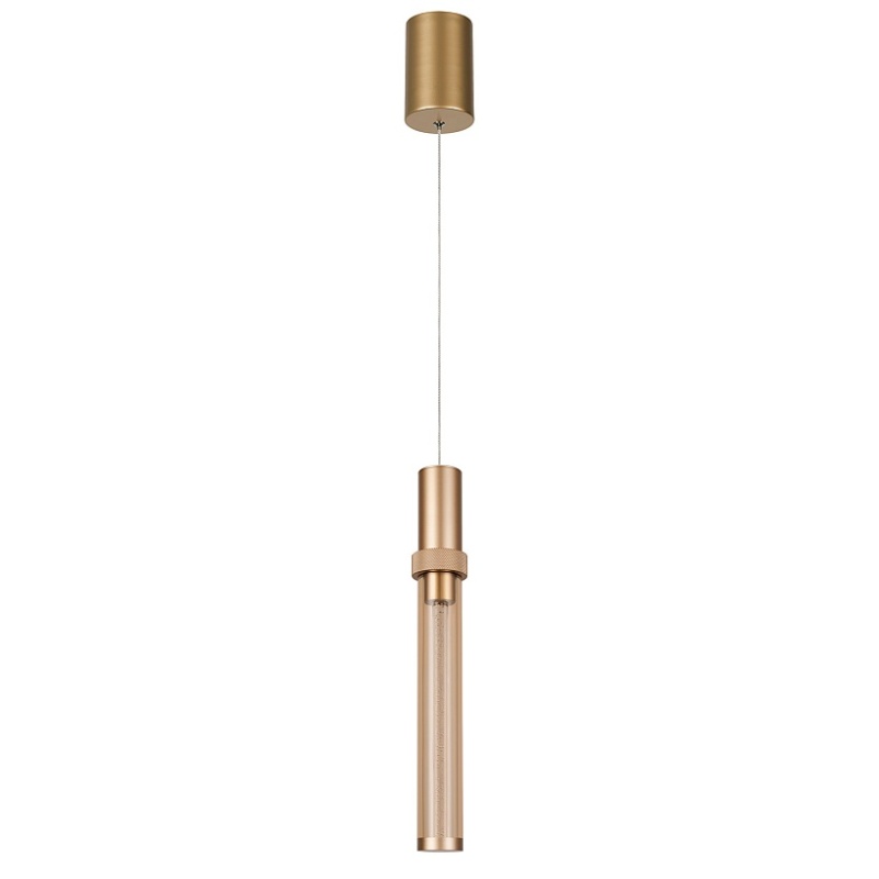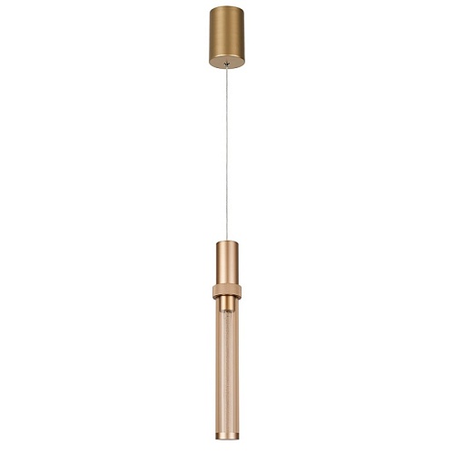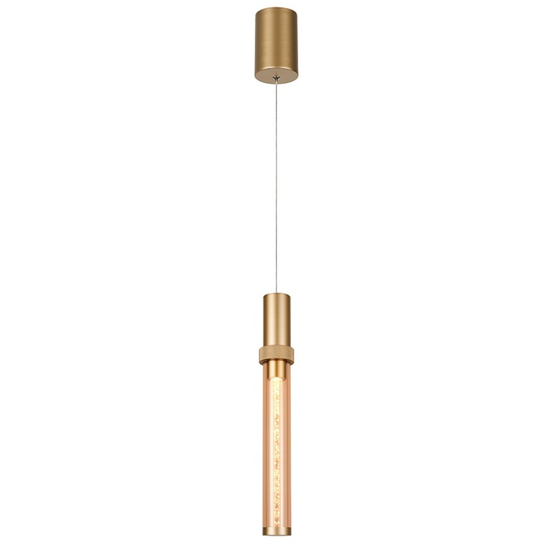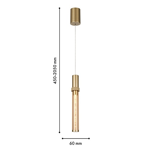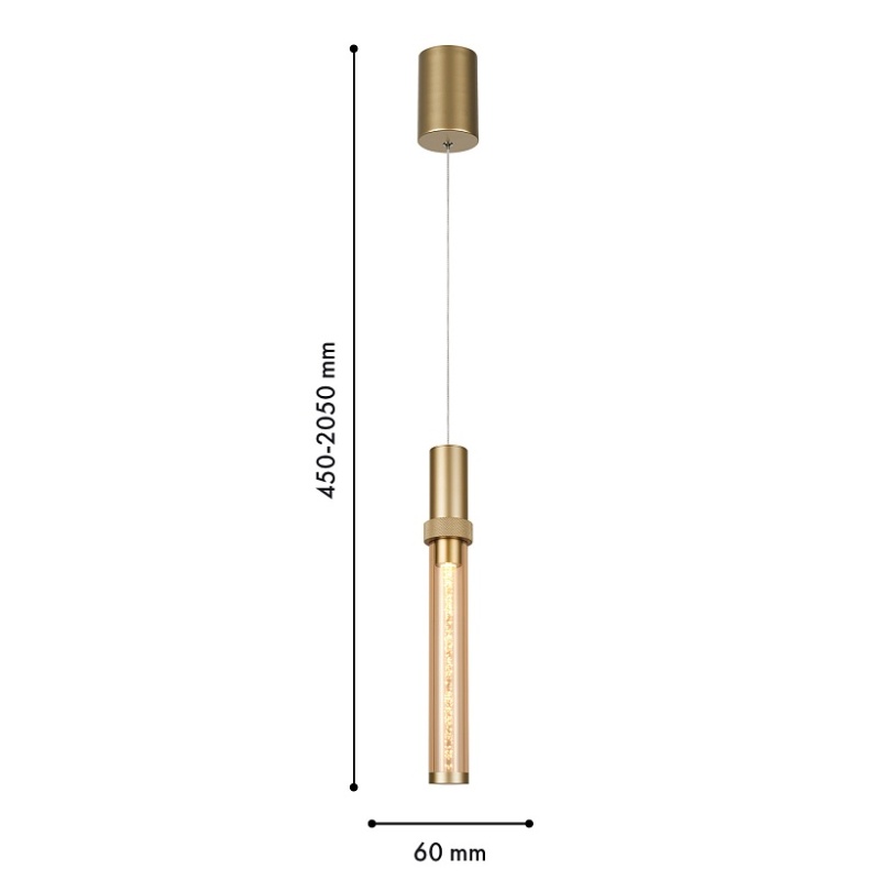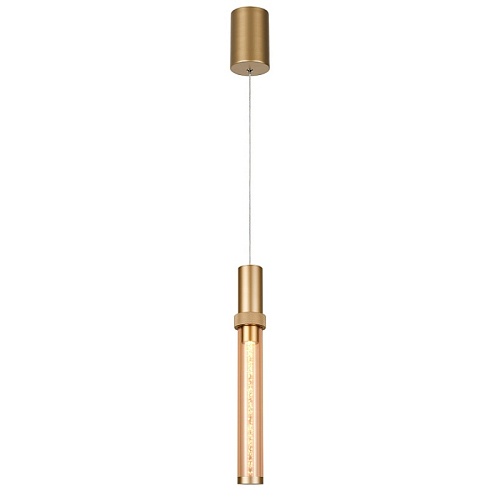 Металлический каркас золотого цвета, плафон из акрила коньячного цвета с пузырками внутри, регулируемая высота.