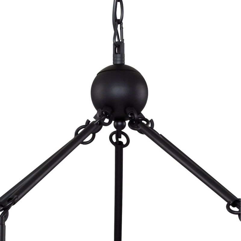 Металлический каркас черного цвета, плафоны из прозрачного выдувного стекла, регулируемая высота, сменные лампы.