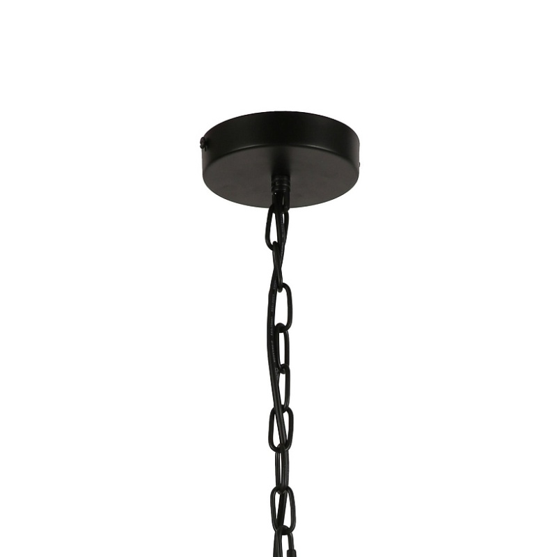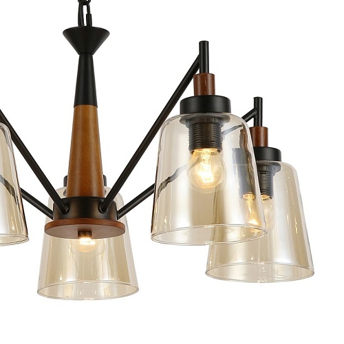 Каркас черного цвета с декоративными элементами из дерева, плафон из прозрачного стекла коньячного оттенка