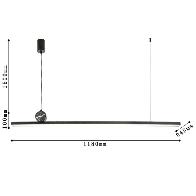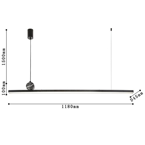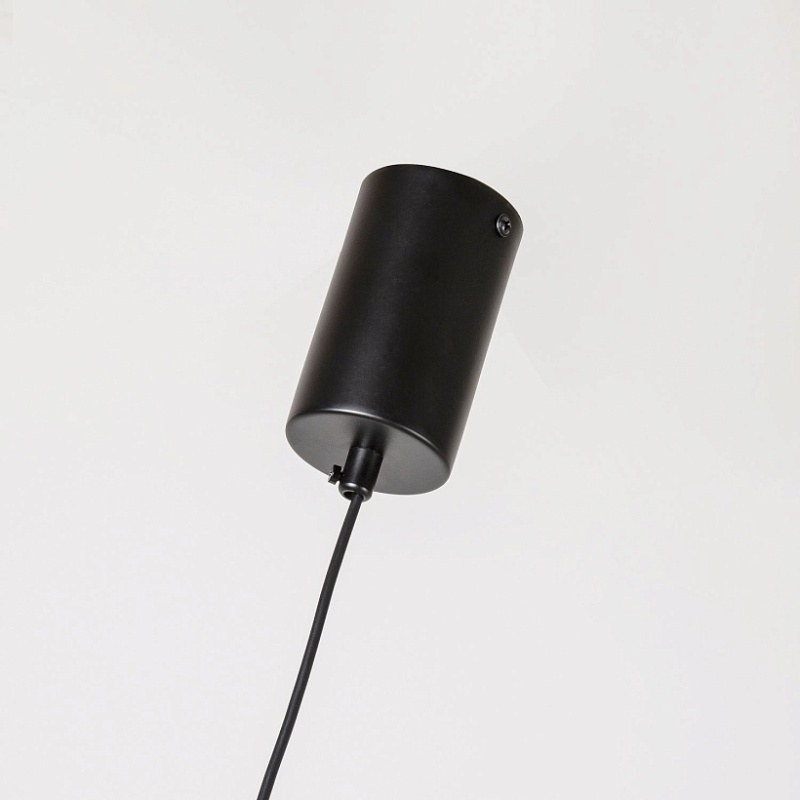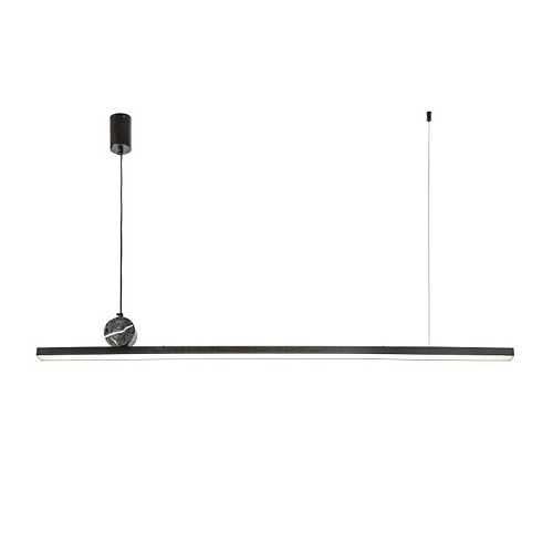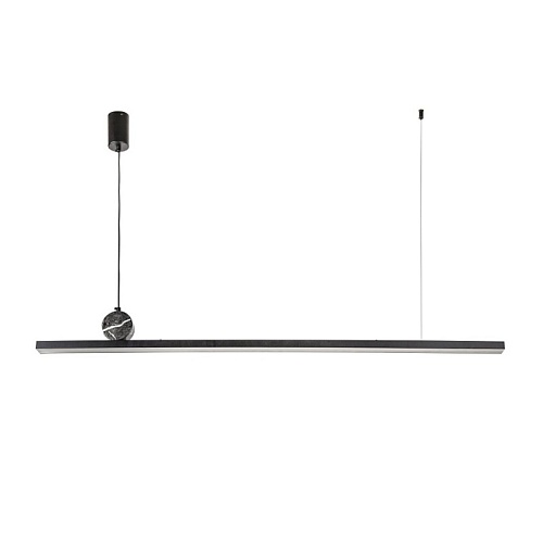 Металлический каркас матового черного цвета, рассеиватель из белого акрила, круглый декоративный элемент цвета черного мрамора, часть Металлический каркаса фиксируется тросиком для баланса, регулируемая высота.
