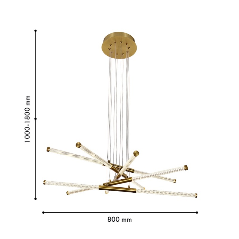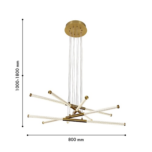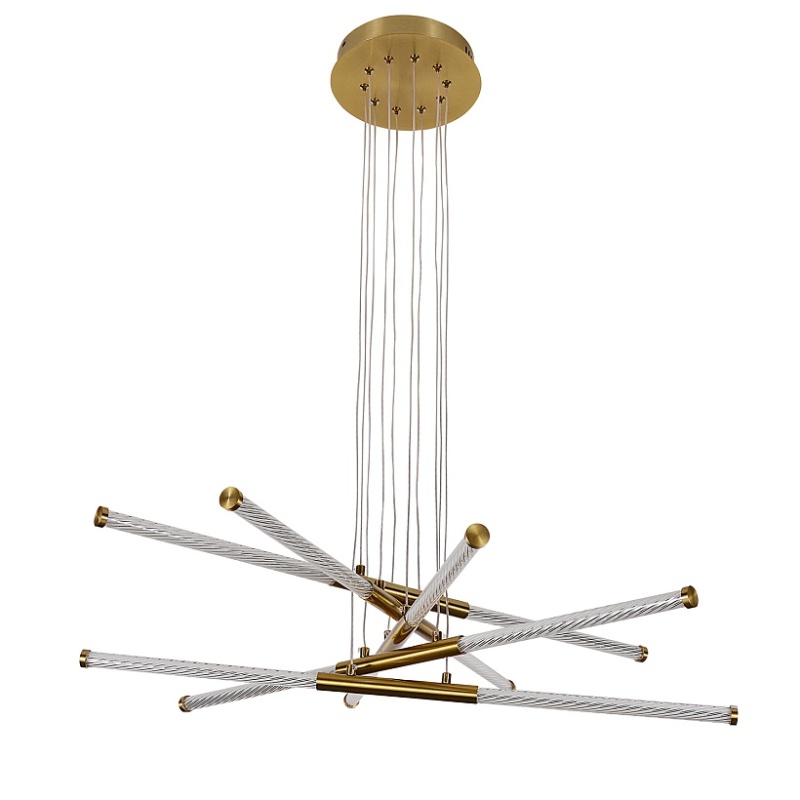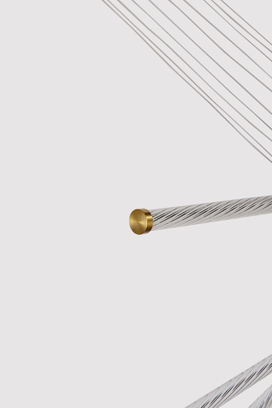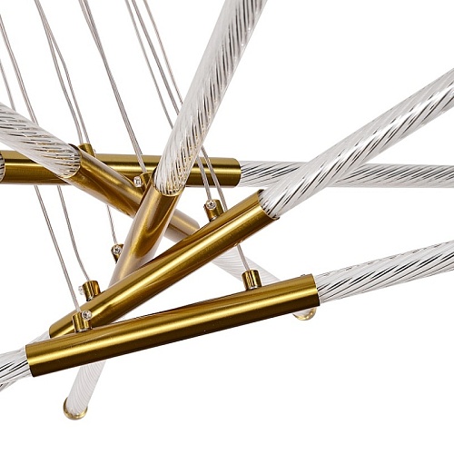 Металлический каркас в цвете латунь, световой элемент представлен композицией из акриловых трубок со спиральным узором, регулируемая высота.