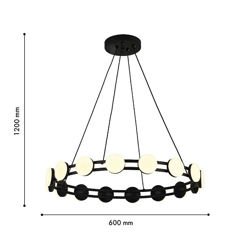 Каркас из металла черного матового цвета, круглые плоские плафоны белого цвета с акриловым рассеивателем, LED-модуль.