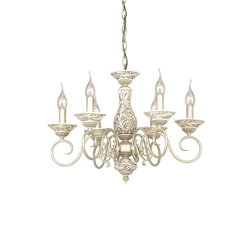 Металлический каркас с белой окраской в античном стиле, регулируемая высота, сменные лампы, цоколь Е14.