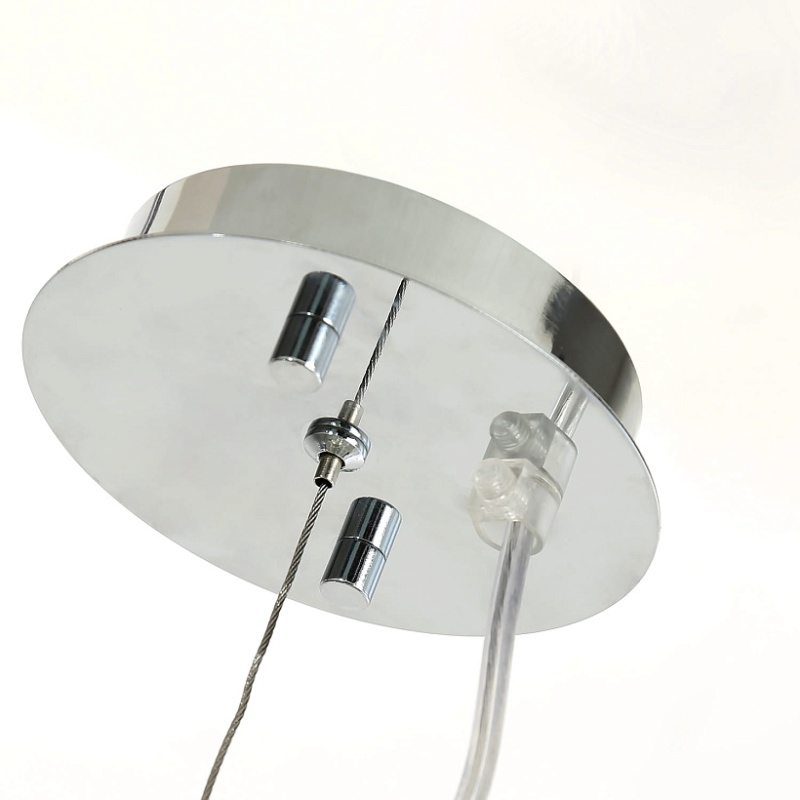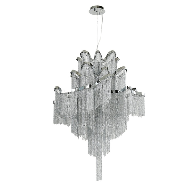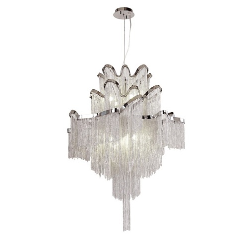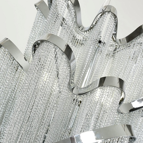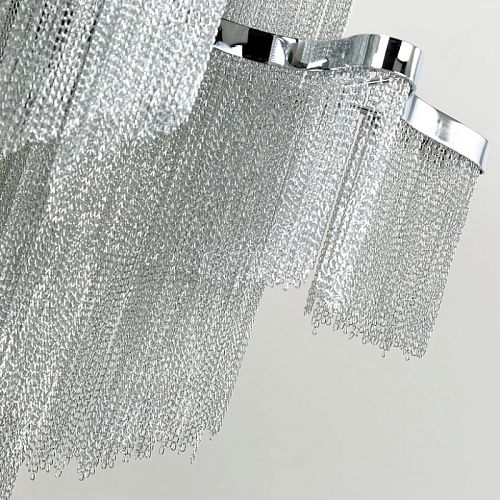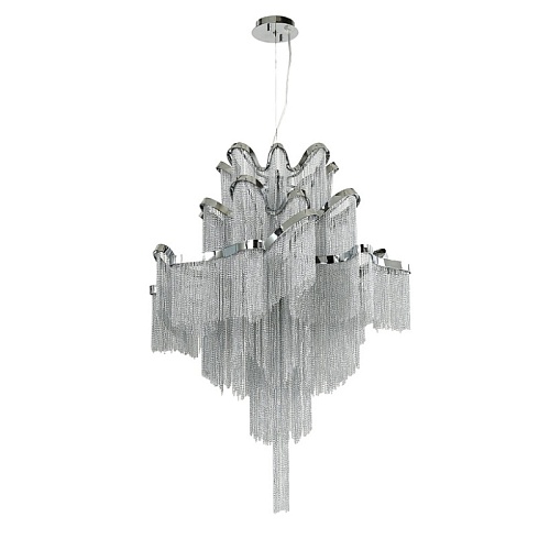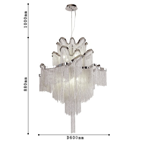 Металлический хромированный каркас, декор из серебристых цепочек, регулируемая высота, сменная лампа, цоколь Е14.