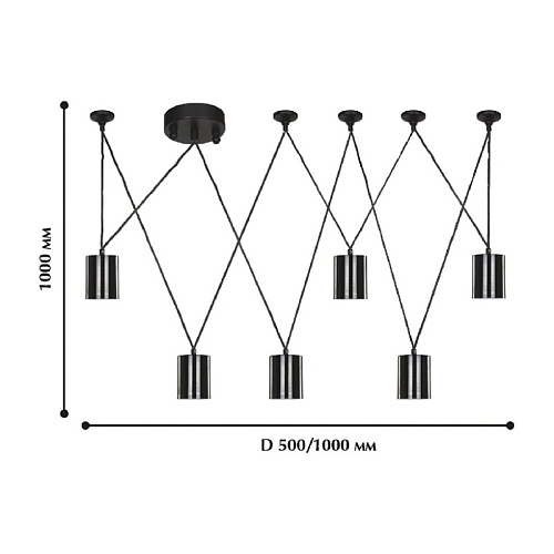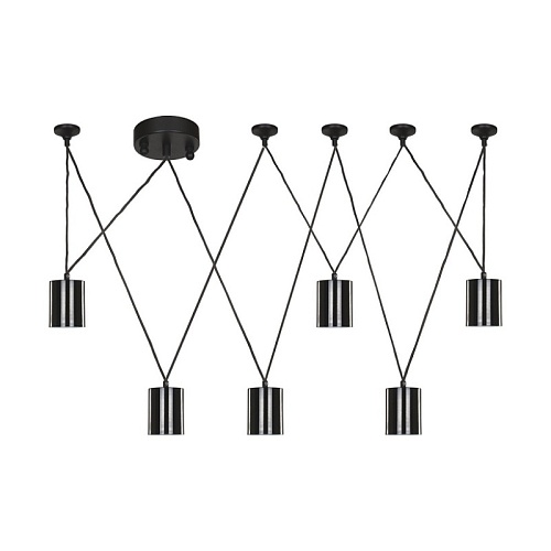 Плафоны черные глянцевые, внутри белые глянцевые, крепления черные матовые, возможность создания различных модификаций светильника при помощи изменения мест крепления к потолку.