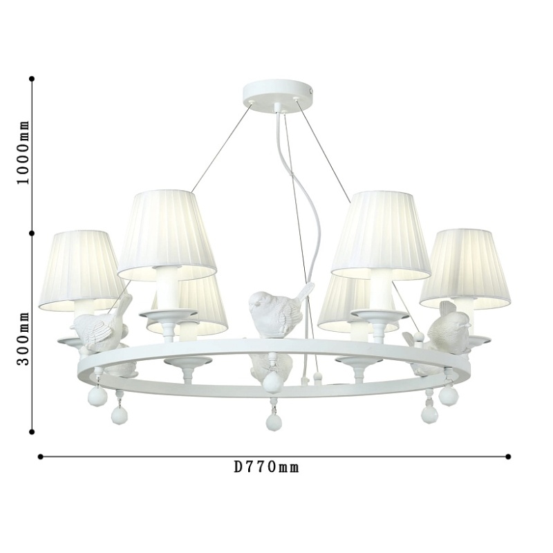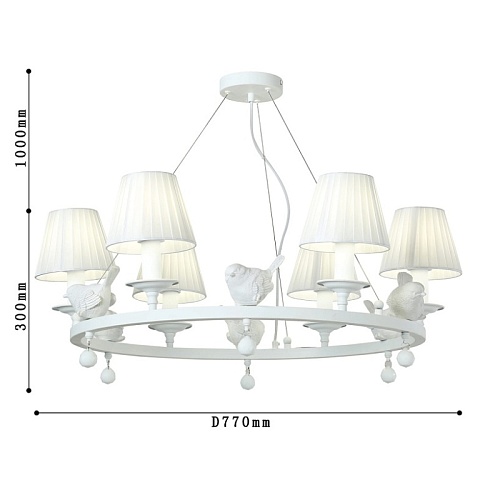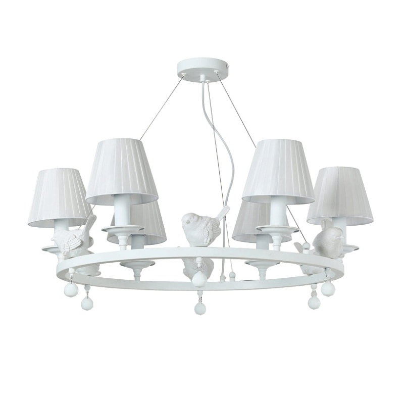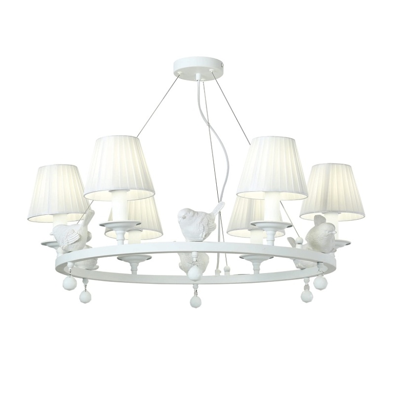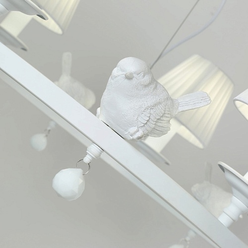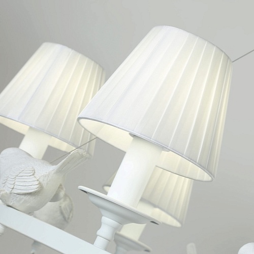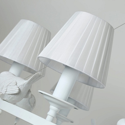 арматура белого цвета, хрустальные подвески, белые тканевые абажуры