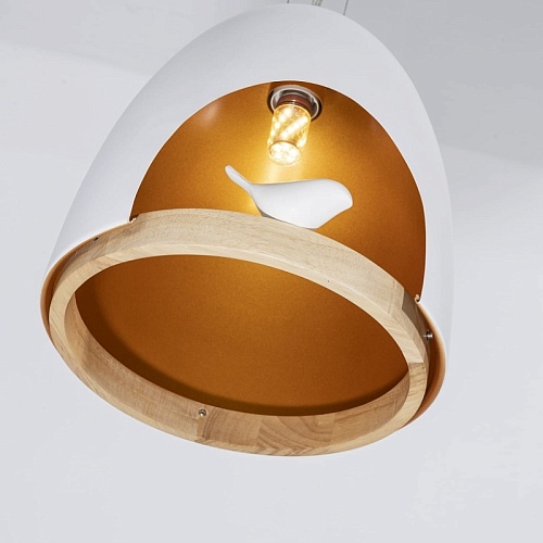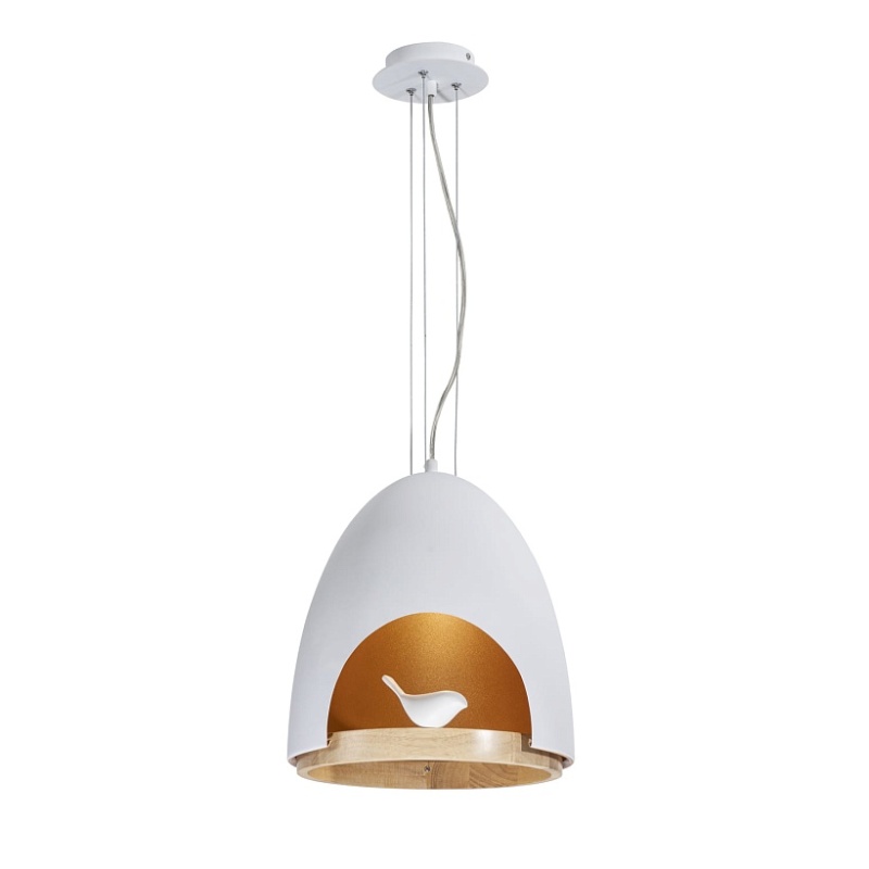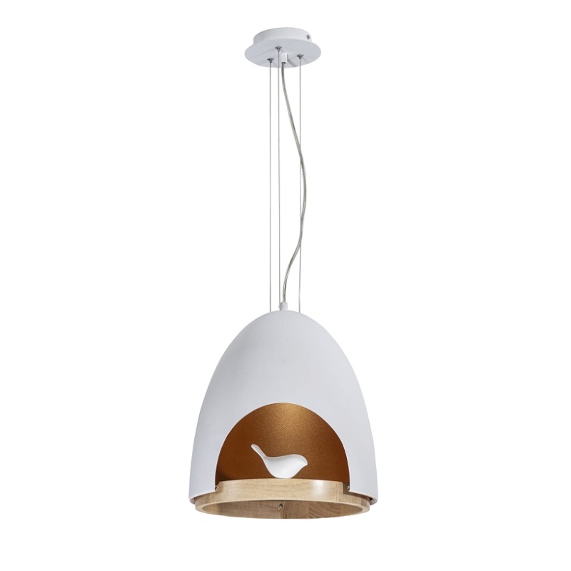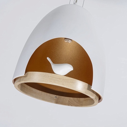 каркас из металла белого цвета с деревянным обручем, внутри окрашен в золотой цвет