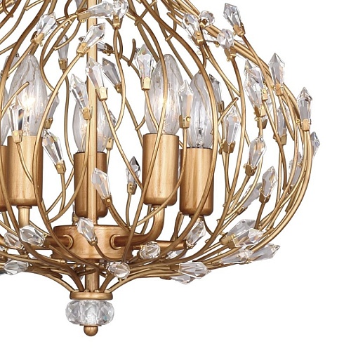 Каркас из металла золотисто-коричневого цвета, прозрачный хрусталь высшего качества, регулируемая высота.